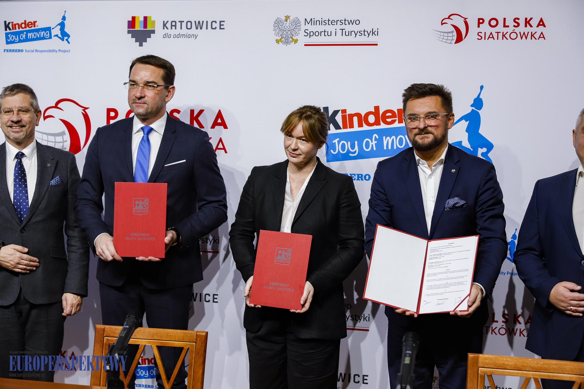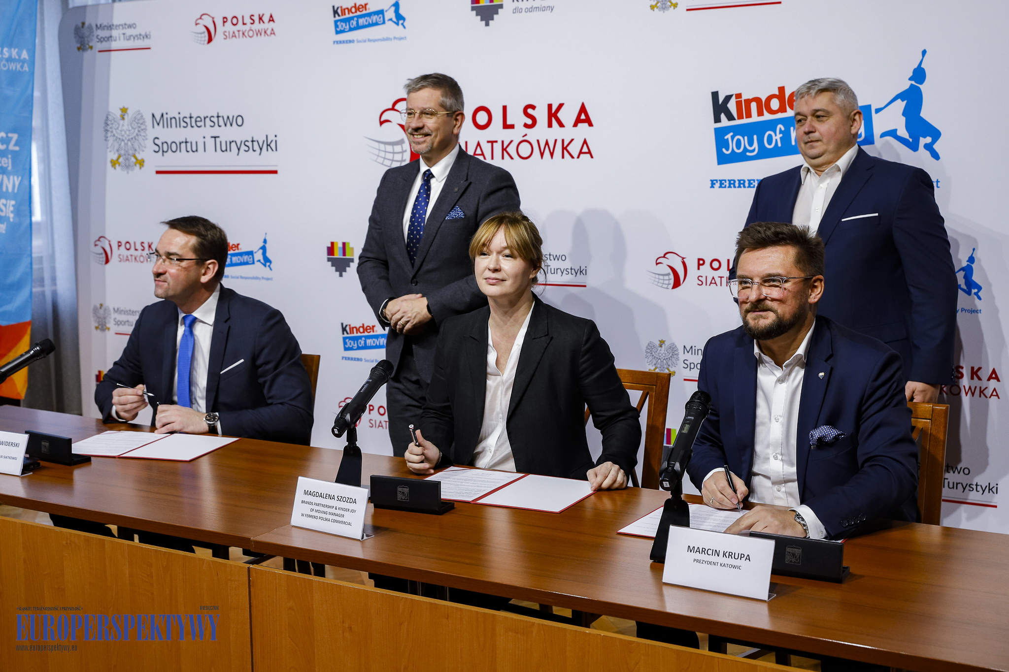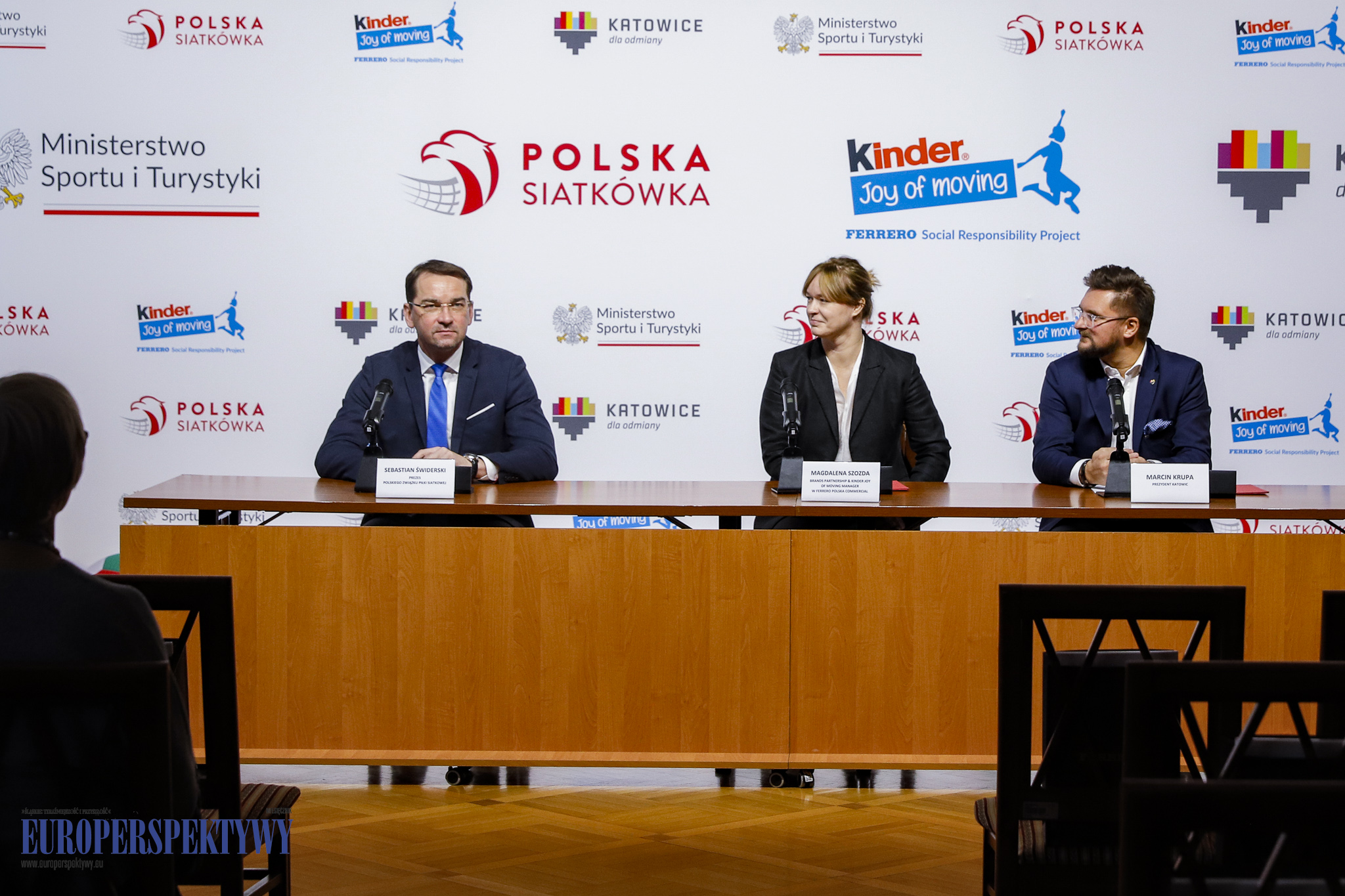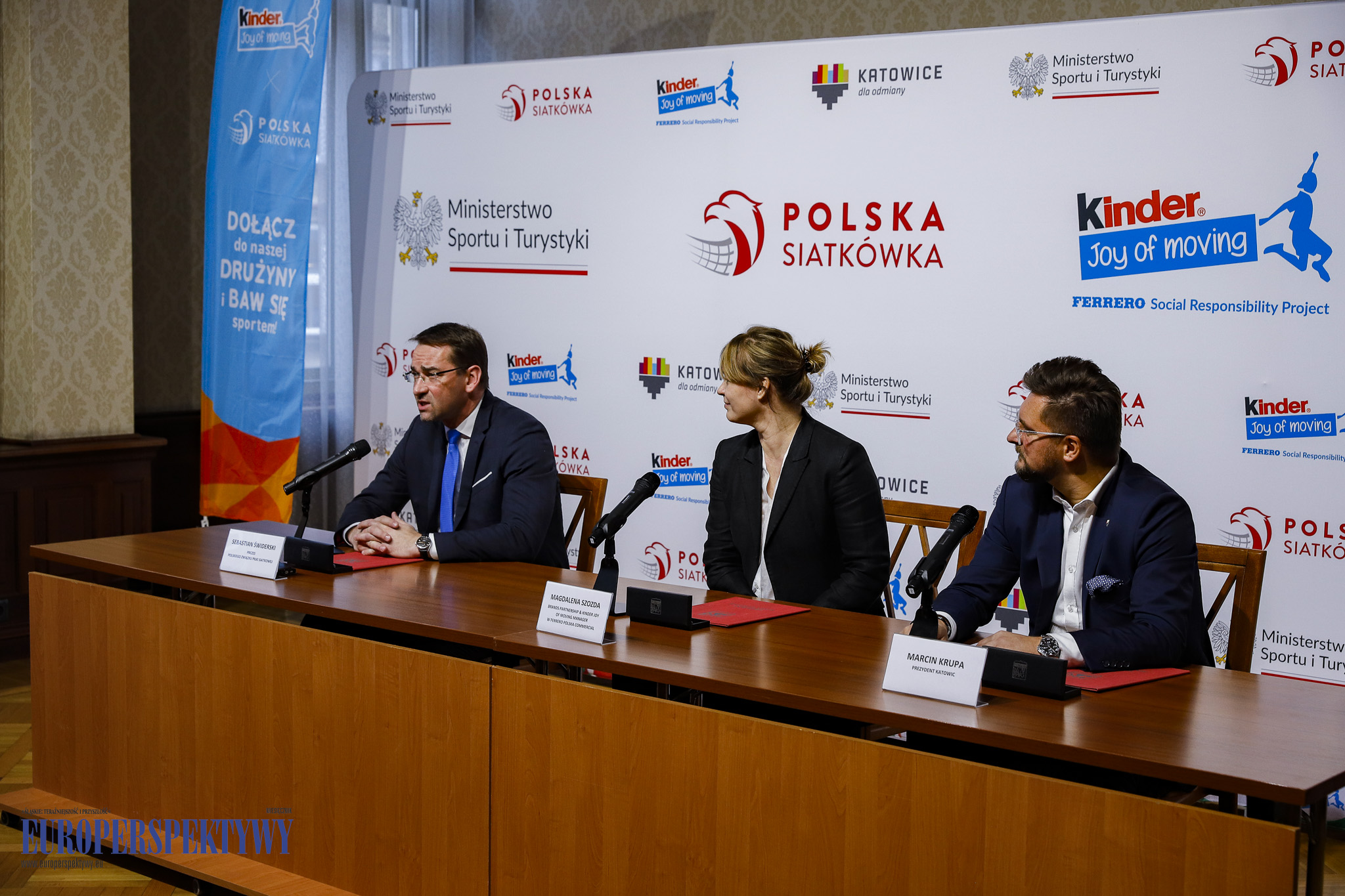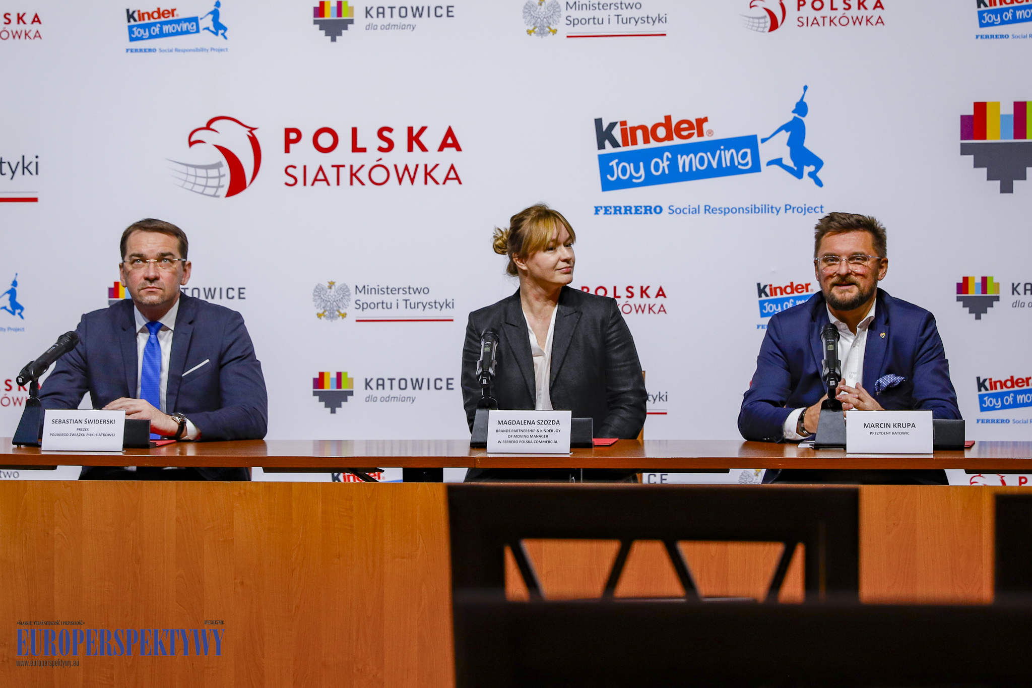 W konferencji udział wzięli Marcin Krupa – Prezydent Katowic, Sebastian Świderski – prezes Polskiego Związku Piłki Siatkowej oraz Magdalena Szozda – brands partnership & KINDER Joy of moving, Manager w Ferrero Polska Commercial.