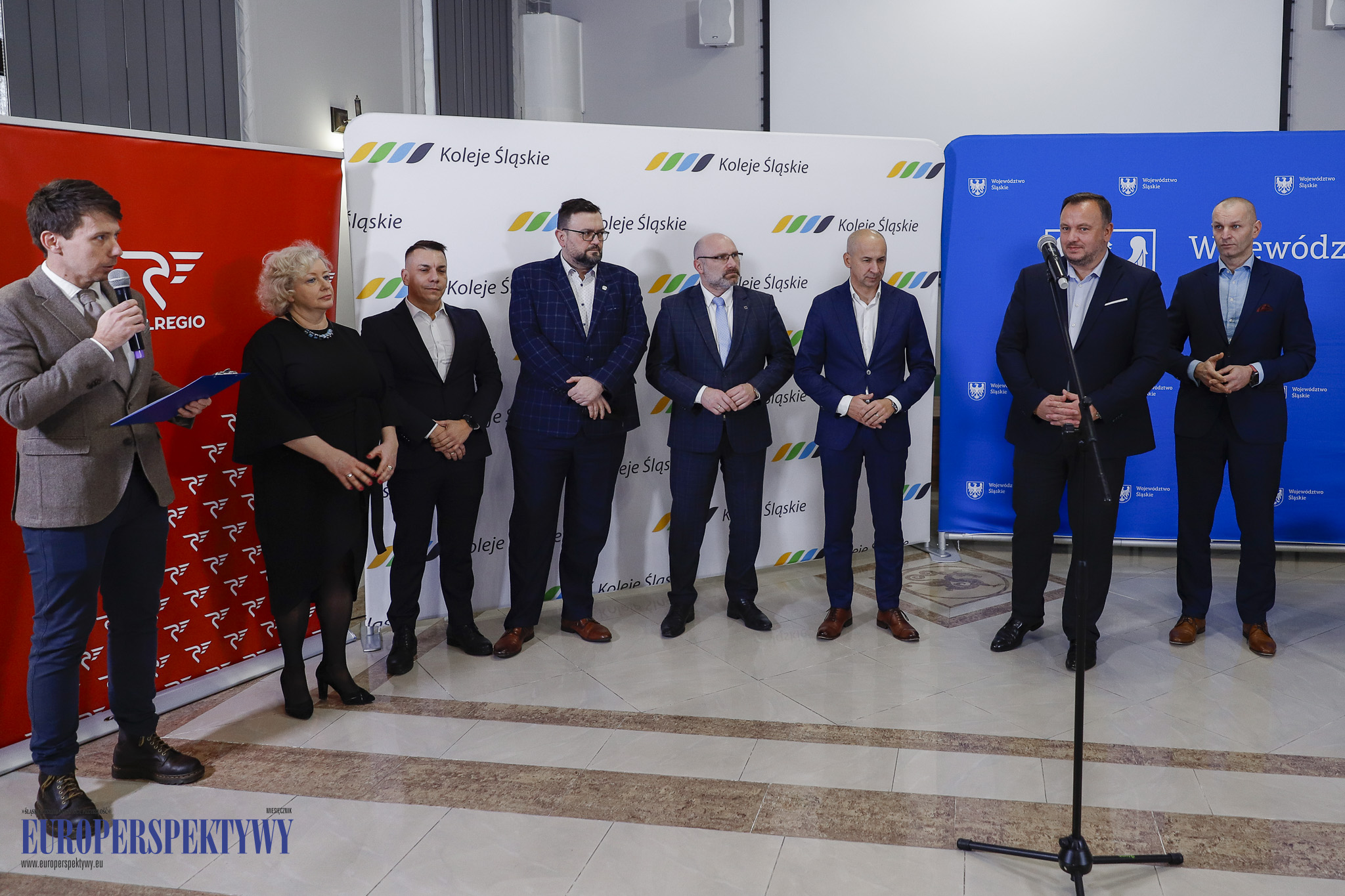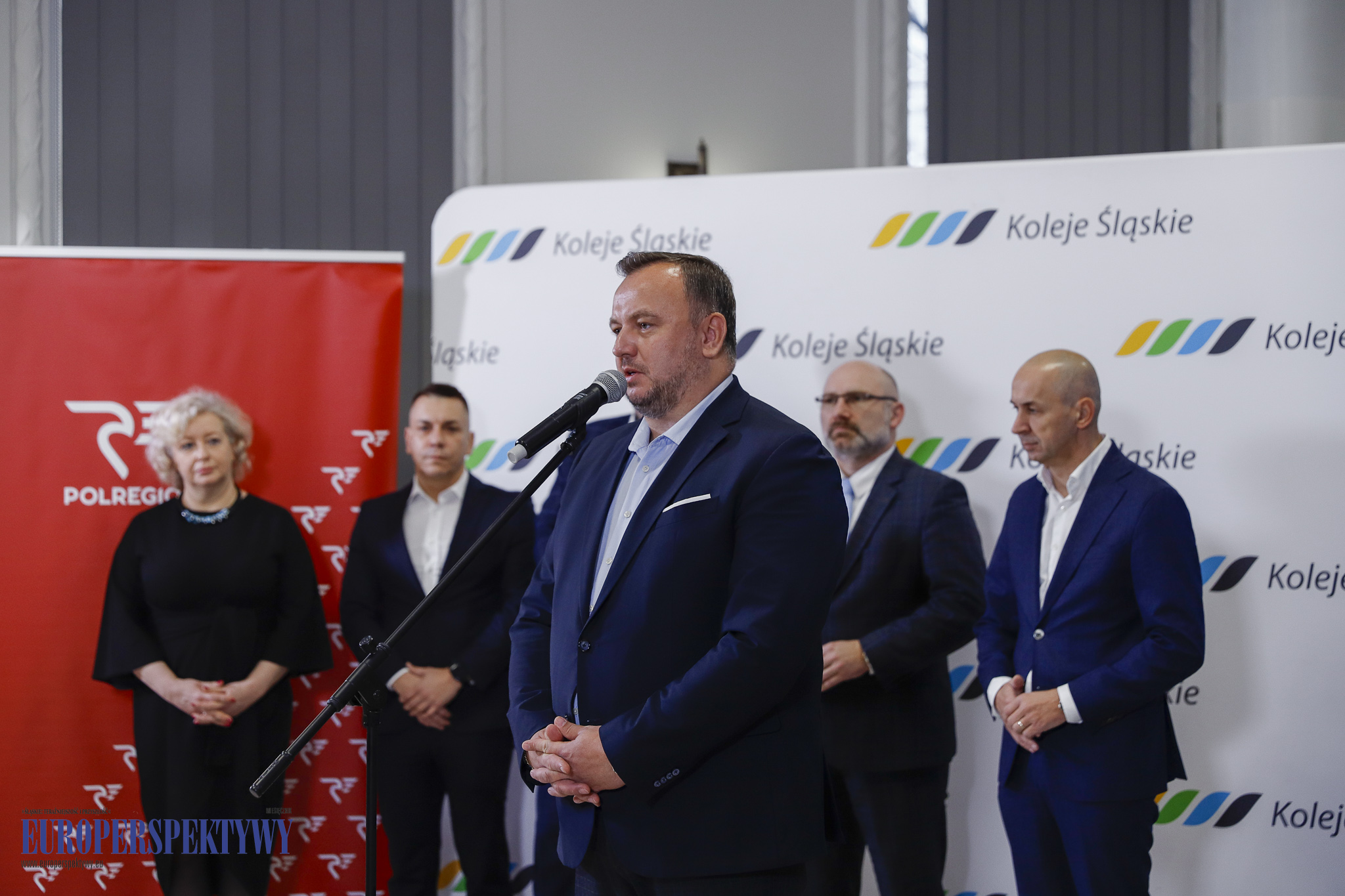 W briefingu wzięli udział: marszałek Województwa Śląskiego Jakub Chełstowski, wicemarszałek Województwa Śląskiego Łukasz Czopik, przewodniczący Metropolia GZM Kazimierz Karolczak, prezes Kolei Śląskich Patryk Świrski oraz pełnomocnik POLREGIO Monika Boryczka.